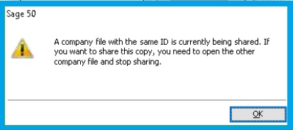 This is the most common error in Sage 50, with the following message being displayed on the screen:
