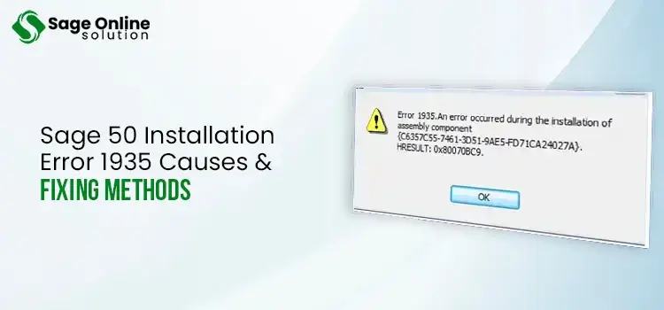 ToggleAs we’ve discussed above, Sage 50 Installation error 1935 is a technical glitch that prevents users from installing the Sage 50 software. At the time of installation, users face an error message reading, “Error 1935. An error occurred during the installation of assembly component {C6357C55-7461-3D51-9AE5-FD71CA24027A}. HRESULT: 0x80070BC9.”