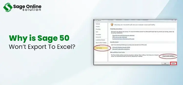 The Trust Center settings can block data sharing from other external applications to MS Excel. The Sage 50 won’t export to Excel error can also occur due to the same. Therefore, to prevent this error, you need to check and modify the settings and prevent it from causing the export error:
